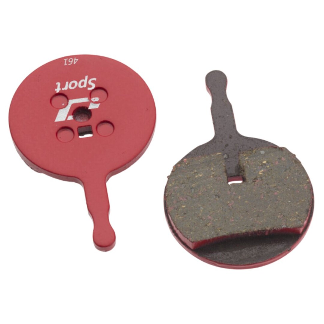 Jagwire Sport Semi-Metallic disc brake pads are a great improvement from OEM. They feature a high-performance semi-metallic compound that blends the low-noise of a resin pad with the durability of a metallic pad. Mounted to a steel backing plate, these are a great all-purpose pad.