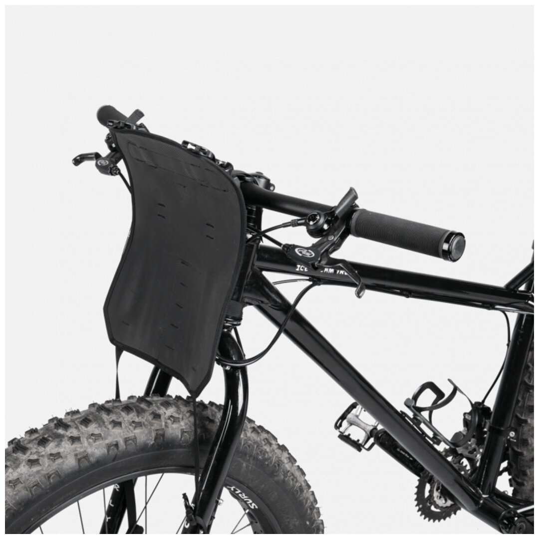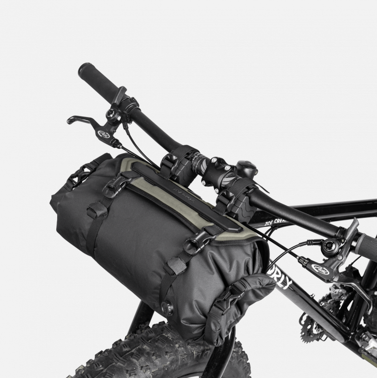 Pack all the gear you need and enjoy the freedom of bikepacking. FrontLoader is perfect for carrying light yet bulky items like sleeping bags, camping gear and spare clothing. Featuring a tough outer support harness and constructed of durable abrasion and water resistant materials, it’s easily installed or removed with two straps, special spacer mounts and quick release buckles. A backside head tube strap attachment increases load stability. A 12 litre removable waterproof drybag keeps contents completely protected from wet weather and splashes while a built-in air release button purges unwanted air from the bag to effectively compress its contents.