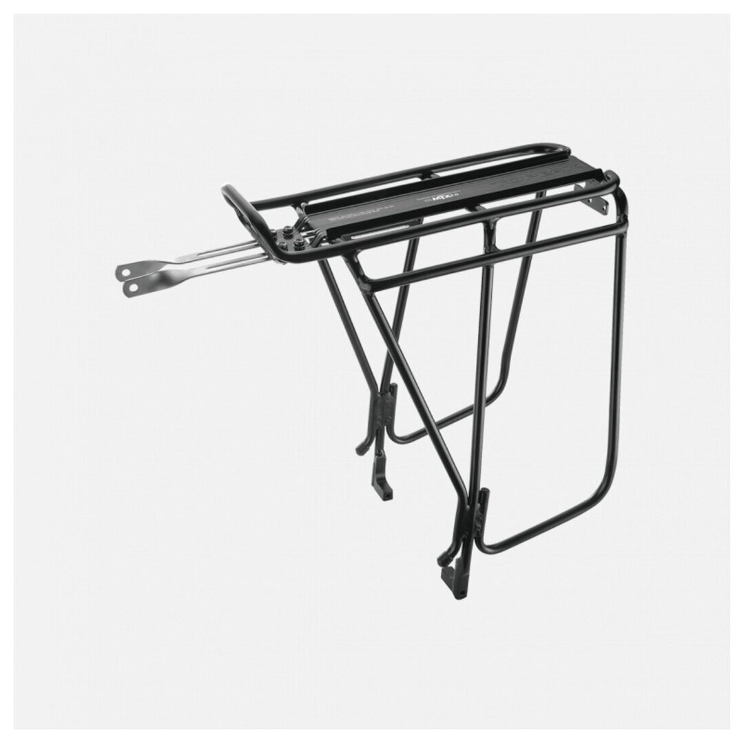 Our toughest tubular aluminium rear rack designed for heavy-duty, long distance touring. Integrated side bar provides a lower pannier attachment point-allowing more space for cargo on the rack top. The MTX QuickTrack® plate is compatible with any Topeak MTX TrunkBag, MTX rear basket, and MTX 2.0 TrunkBag.